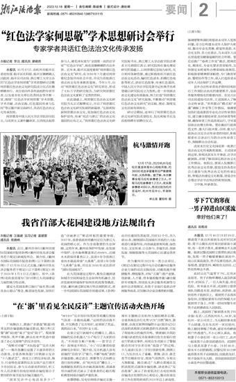 本报讯 12月17日,由杭州市临平区委宣传部、临平区社科联、临平区塘栖镇人民政府、临平区司法局、浙江理工大学主办的“红色法学家何思敬”学术思想研讨会暨何思敬红色法治文化研究院成立仪式在塘栖镇举行。来自省内外多所高校的专家学者,以及省市有关单位负责同志等齐聚一堂,围绕“‘红色法学家何思敬’学术思想、学术贡献、法治实践,红色基因传承与弘扬”等议题开展交流研讨,共话红色法治文化传承发扬。