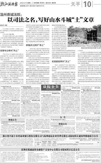 浙江法治报 天平 00010 以司法之名,写好山水斗城“土”文章 2023-12-19 26522065 2 2023年12月19日 星期二