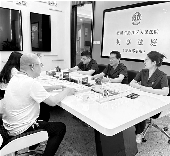 “双方达成一致意见……”前不久,衢江法院民庭副庭长方琦在共享法庭内,为双方当事人明确调解协议内容。
