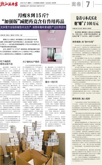 2023年12月19日,龙泉市“10·18”生产、销售有毒、有害食品案在龙泉市人民法院宣判,周某夫妇、周乙以及周乙下级两个代理、受周某夫妇雇佣生产“加强版”减肥药的工人均被判刑。