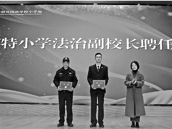 近日,杭州市余杭区检察院检察官梅哲宾受聘担任杭州英特外国语学校小学部法治副校长,并在受聘仪式上为全校师生作法治宣讲。