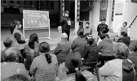 近日,天台县公安局三合派出所联合三合镇妇联,在辖区内开展妇女权益保护普法宣传活动,切实把法律法规知识送到妇女群众手中。 通讯员 鲍彩红 郑伟健