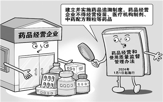 国家市场监管总局公布的《药品经营和使用质量监督管理办法》1月1日起施行,办法明确建立并实施药品追溯制度,药品经营企业不得经营疫苗、医疗机构制剂、中药配方颗粒等药品。
