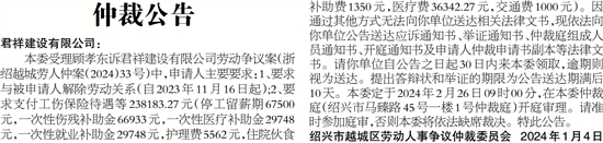 绍兴市越城区劳动人事争议仲裁委员会 2024年1月4日
