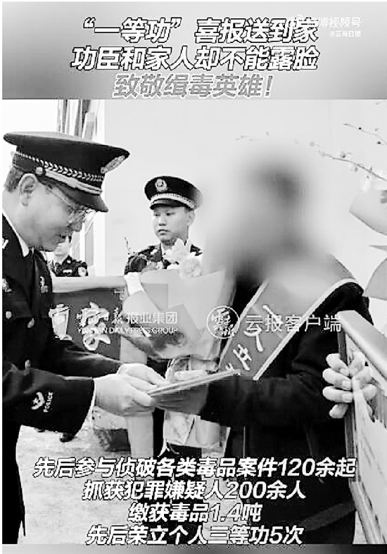 近日,云南临沧边境管理支队与当地相关部门,将“一等功臣之家”功勋牌匾送到民警李康(化名)家中。对外发布的画面里,李康和家人的脸部都被打上了马赛克,因为他是一名不能露脸的“缉毒尖兵”。在戍卫祖国西南边境的17年间,李康一直战斗在缉枪缉毒斗争一线,参与侦破各类毒品案件120余起,抓获犯罪嫌疑人200余人,缴获毒品1.4吨,成功摧毁多个重大贩毒团伙,先后荣立个人三等功5次。