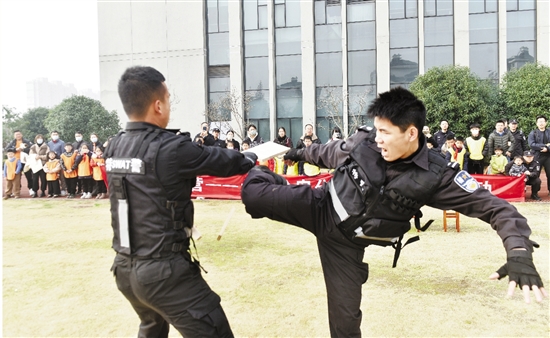 为了迎接警察节的到来,宁波北仑公安组织了警营开放日活动。6日上午,北仑巡特警大队热闹非凡,来自附近学校的小朋友与家长共百余人走进警营,观摩了擒拿格斗与警犬表演等。 通讯员 崔伦君