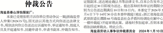 海盐县劳动人事争议仲裁委员会 2024年1月10日