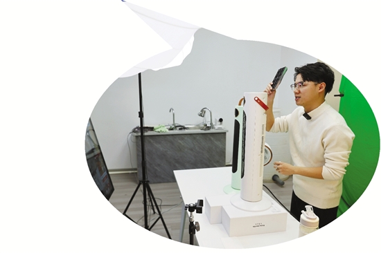 | 2023年12月20日,慈溪市观海卫镇一家取暖设备生产企业的主播在直播中推介相关产品。 新华社发 蒋亚军 摄 (图文无关) |