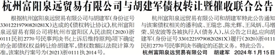杭州富阳泉远贸易有限公司与胡建军债权转让暨催收联合公告