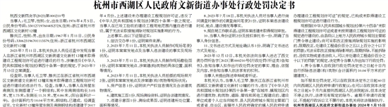 杭州市西湖区人民政府文新街道办事处行政处罚决定书