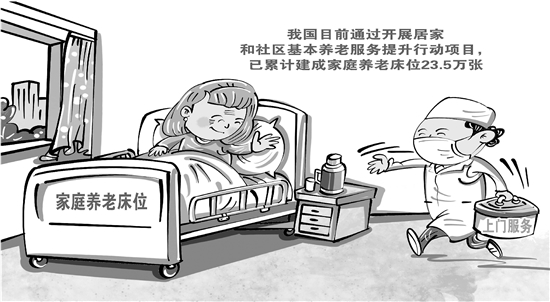 我国目前通过开展居家和社区基本养老服务提升行动项目,已累计建成家庭养老床位23.5万张、为41.8万老年人提供居家养老上门服务。