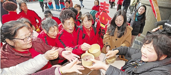 | 1月16日,杭州上城区望江街道举办“文艺赋美”腊八节非遗集市,现场派送腊八粥、写福送春联、“始版”印腾龙、制作艾草锤……为居民们带来形式多样的传统习俗体验活动,丰富区域优质公共文化服务供给,营造喜庆祥和的节日氛围。 林云龙 朱婷婷 摄 |