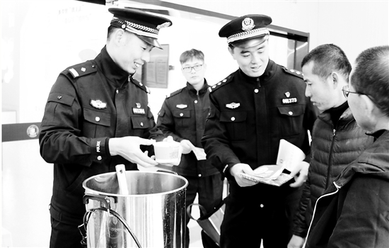 近日,衢州市柯城区万达商圈警务融治工作站的临时党支部开展了“严寒腊八节 热粥暖人心”活动,来自城站派出所、衢州市公安局反邪教处、花园街道花苑社区、衢州万达广场商圈的党员向群众发放腊八粥,并讲解反诈反恐反邪教等安全防范知识。
