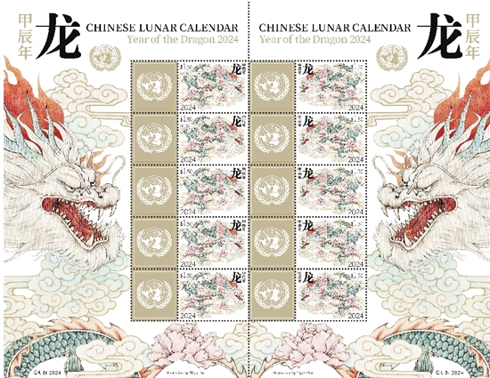| 新华社 谢锷 联合国邮政管理局将于1月19日在纽约发行中国农历甲辰年特别版邮票版张——龙票版张,庆祝中国农历新年的到来。这是该邮票版张样图。 联合国邮政管理局2010年5月首次发行以中国生肖为内容的邮票,到2021年已发行了首轮12张生肖邮票。2024年的龙年邮票是第二轮生肖邮票的第3张。 |