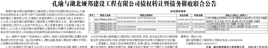 孔瑜与湖北娅邦建设工程有限公司债权转让暨债务催收联合公告