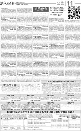 张诗文:本院已受理原告李伟民诉被告张诗文买卖合同纠纷一案,已审理终结,现依法向你公告送达(2023)浙0212民初13844号民事判决书。自公告之日起经过30日,即视为送达。如不服本判决,可在公告期满后15日内,向本院递交上诉状及副本,上诉于浙江省宁波市中级人民法院。逾期未上诉的,本判决即发生法律效力。 宁波市鄞州区人民法院