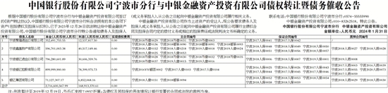 中国银行股份有限公司宁波市分行与中银金融资产投资有限公司债权转让暨债务催收公告
