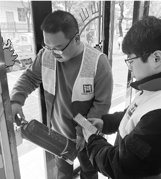 本报讯 “这个月开展全面消防检查了吧?”近日,金华市婺城区城东街道网格员杨涛特地询问辖区一超市的负责人。原来,之前杨涛在平安检查中发现该超市未履行每月一次消防检查,之后每逢月末便主动上门提醒。同一天,婺城区白龙桥镇网格员朱晟通过金安智治系统进行平安检查时发现,辖区某公司存在安全生产隐患,随即与该公司负责人联系并监督整改。