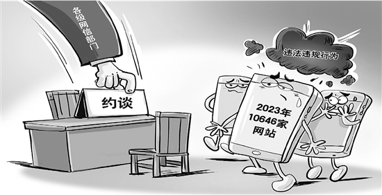 记者近日从国家网信办获悉,2023年,全国网信系统持续推进网络执法监督检查,查处各类网上违法违规行为,全年共约谈网站10646家,责令453家网站暂停功能或更新,下架移动应用程序259款,关停小程序119款,会同电信主管部门取消违法网站许可或备案、关闭违法网站14624家,督促相关网站平台依法依约关闭违法违规账号127878个。