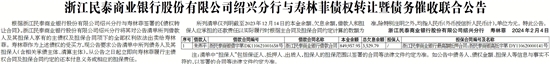 根据浙江民泰商业银行股份有限公司绍兴分行与寿林菲签署的《债权转让合同》,浙江民泰商业银行股份有限公司绍兴分行将其对公告清单所列借款人及其担保人享有的主债权及担保合同项下的全部权利依法出卖给寿林菲。寿林菲作为上述债权的受买方,现公告要求公告清单中所列债务人及其担保人(含相关承债主体、清算主体),从公告之日起立即向寿林菲履行主债权合同及担保合同约定的还本付息义务或相应的担保责任。