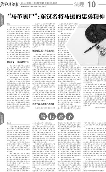 浙江法治报 法趣 00010 “马革裹尸”:东汉名将马援的忠勇精神 2024-02-09 浙江法治报2024-02-0900008;浙江法治报2024-02-0900009 2 2024年02月09日 星期五