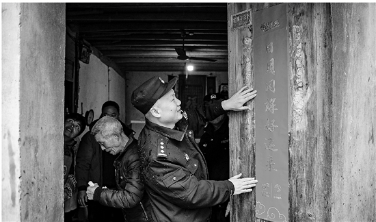 新春来临之际,金华市公安局婺城分局蒋堂派出所组织民警深入山区村居,开展“送春联平安过大年”大走访活动,为村民送去新春祝福的同时,宣讲安全防范知识。 通讯员 江浪