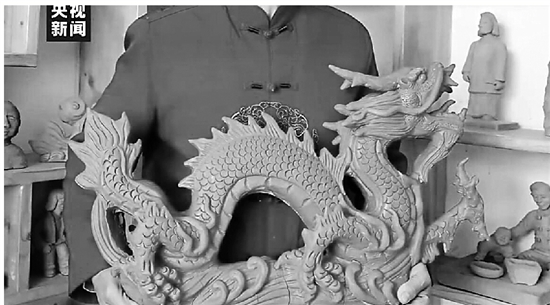 泥塑艺人捏出红色“中国龙”