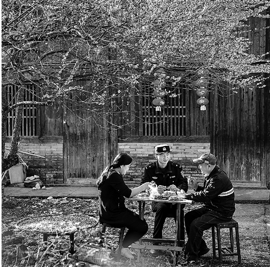 近日,台州市公安局黄岩分局北洋派出所民警走访北洋镇潮济老街,向村民们征求新一年对公安工作的意见和建议。