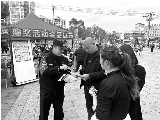 2月19日,温州龙湾公安星海派出所民警李康德来到置信广场人才招聘会上,向群众发放防诈骗资料、讲解各类诈骗案例,提醒大家找工作也要提高警惕,捂牢自己的钱袋子。 通讯员 张若克 摄