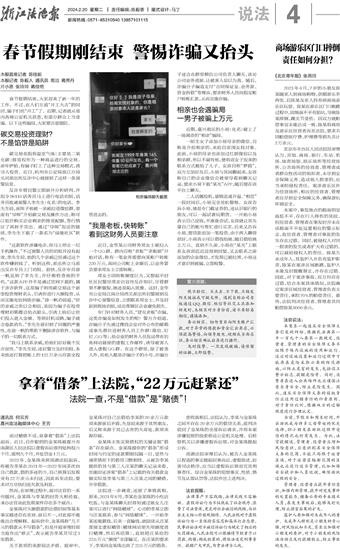 浙江法治报 说法 00004 春节假期刚结束 警惕诈骗又抬头 2024-02-20 26658515 2 2024年02月20日 星期二