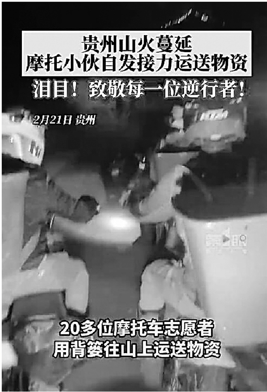 贵州山火蔓延摩托小伙接力运送物资