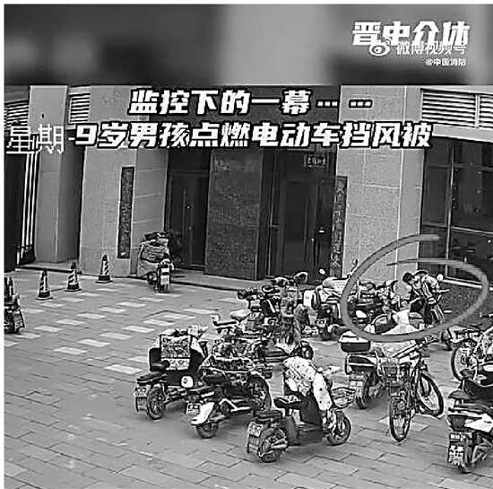 | 熊孩子点燃电动车挡风被险酿大祸 @中国消防 (国家消防救援局官方微博) 近日,山西晋中,一名9岁男孩街边玩火,点燃停放在一旁的一辆电动车上的挡风被,随后不动声色地同家长离开现场。物业安保人员发现起火后第一时间将附近车辆挪开,并利用灭火器进行扑救,及时阻止了一场大火。提醒:家长要增强儿童防火意识,教育儿童严禁玩火! |