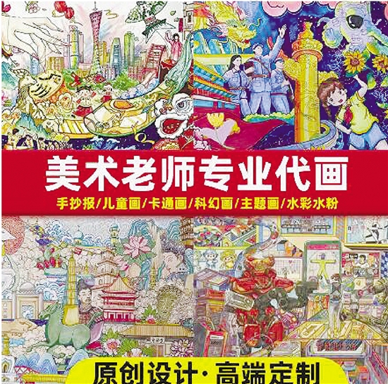 “一到放假,就要为手抄报发愁,各科老师都爱布置这个作业。”作为小学生家长,林女士着实有些苦恼,“孩子不太会画画,字也写不出来多少,只能大人帮忙,可我也不擅长这个。”与朋友闲聊时,林女士意外得知网上专门有人提供代画服务。