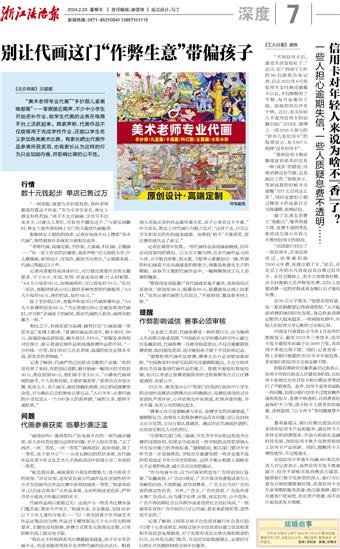 “现在从手抄报到美术比赛都越来越卷,孩子辛辛苦苦画半天,也还是跟那些找专业老师代画的没办法比。眼看别人花钱买来的作品最终拿大奖,孩子心里肯定不平衡。”作为家长,程女士对代画行为极力反对,“这样下去,只会让学生和家长的负担越来越重。如果找‘枪手’才能获奖,那比赛也就失去了意义。”