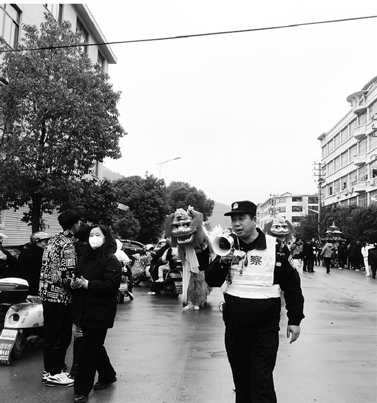 近日,三门县珠岙镇举行民间舞龙舞狮活动,吸引了四面八方的群众前来观看。珠岙派出所组织警力全程护卫,确保群众安全看表演。 通讯员 林利军