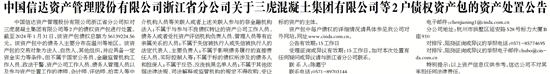 中国信达资产管理股份有限公司浙江省分公司关于三虎混凝土集团有限公司等2户债权资产包的资产处置公告
