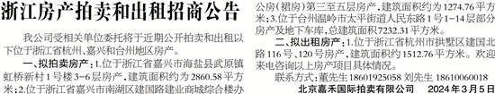 我公司受相关单位委托将于近期公开拍卖和出租以下位于浙江省杭州、嘉兴和台州地区房产。
