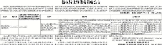 2、本公告清单仅列示截至2023年7月31日的本金余额,债务人和担保人应支付给浙江省浙商资产管理股份有限公司的利息、罚息、复利、重组收益、逾期重组收益、重组宽限补偿金、逾期重组宽限补偿金、违约金及其它应付款按债务重组协议、担保合同及中国人民银行的有关规定或生效法律文书确定的方法计算。