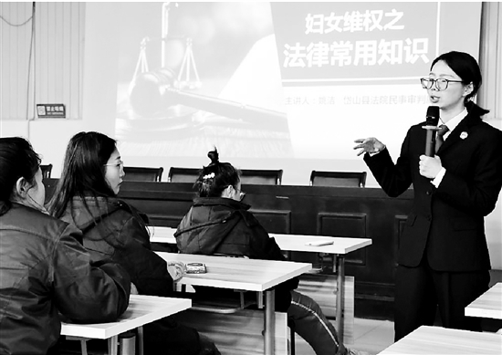 近日,岱山县人民法院走进舟山绿色石化基地,为岛上的女性职工们送去了“法治大礼包”:讲解有关婚姻、反家庭暴力等与妇女权益息息相关的法律知识,引导大家知法、懂法、用法,更好地利用法律武器维护自身合法权益。