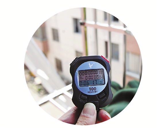 可见,虽然较前一次实验高了一个楼层,但防盗窗拥有逃生口后,整个逃生过程的时间明显少了很多。