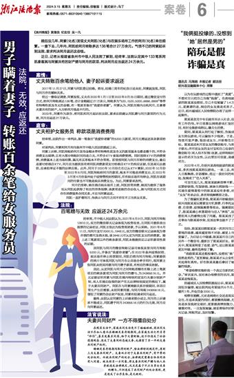 丈夫转账百余笔给他人 妻子起诉要求返还