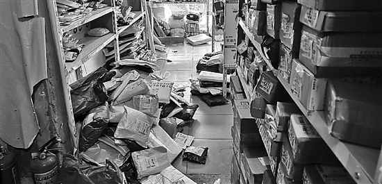 中午1点,在杭州市拱墅区某小区内一家便利店门口,邮政快递的配送员小王卸下一堆包裹,一个个扫码发送短信后,将包裹托付给便利店老板。