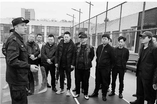 近日,台州市公安局椒江区分局巡特警大队民警和府前派出所民警一起,向辖区场所负责人、保安队长传授防范技能,现场示范讲解盾牌、钢叉等使用方法和注意事项,提高他们应对处置突发事件的能力。 通讯员 何文斌 摄