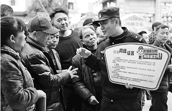 | 为进一步提升广大群众识谣、辨谣能力,连日来,台州市公安局黄岩分局民警依托各乡镇市集等活动,开展打击整治网络谣言宣传,让群众明白网络谣言的社会危害性及散播网络谣言需要承担的法律责任,做到不造谣、不信谣、不传谣。 通讯员 王淑燕 |