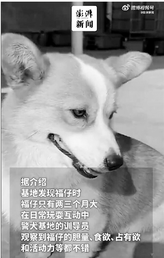 柯基警犬“福仔”近日在山东潍坊警营开放日成为全场焦点。作为我国唯一一只柯基警犬,据介绍,经过三个月的正式训练,福仔成为了一只警犬,跟随基地出任务。
