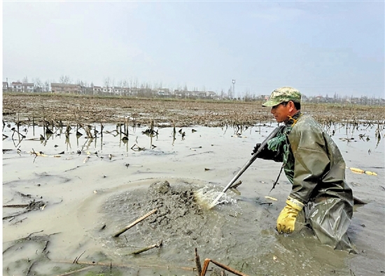 尽管如此,“打藕”依然辛苦。赵道凯在摸索时一直保持着左肩往下歪着的姿势,还要跪在淤泥里一点点爬行。“连打3天浑身酸疼,干完今天说什么都得歇着。”