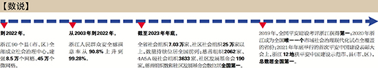 全省社会组织7.03万家、社区社会组织25万家以上,数量持续位居全国前列;慈善组织2062家、4A5A级社会组织3633家、社区发展基金会190家,慈善组织数和社区发展基金会数位居全国第一。
