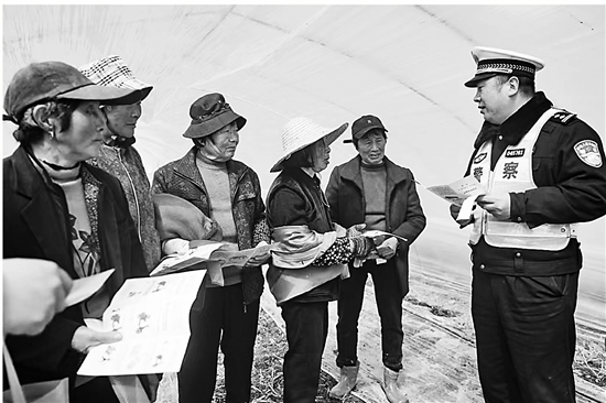 近日,嘉兴市公安局南湖区分局交通警察大队民警深入田间地头,向村民发放交通安全宣传手册和非机动车反光条,讲解电动自行车不佩戴安全头盔、农用机动车非法载人、超员超载等交通违法案例,提醒村民自觉遵守交通法规。 通讯员 周晨磊