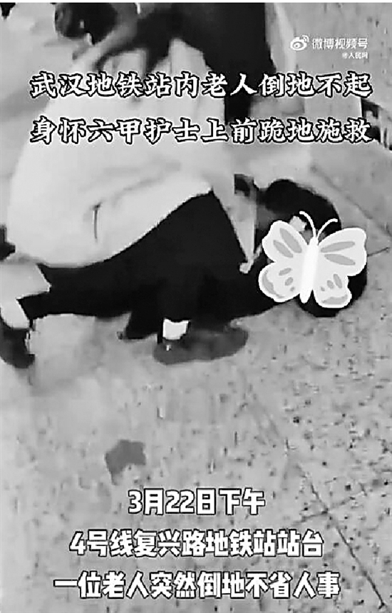 近日,一位老人在湖北武汉地铁站内候车时突然倒地晕厥、不省人事。武汉大学人民医院心血管医院心脏重症监护科护士曾钿钿恰好路过,已经怀孕6个多月的她毫不犹豫跪地对患者实施救助,协同地铁工作人员和路过行人轮流对老人进行心肺复苏,直到120医护人员赶到现场将老人送往医院救治。完成现场交接后,曾钿钿自己也感觉心慌乏力,拖着疲惫的身体回到科室休息。