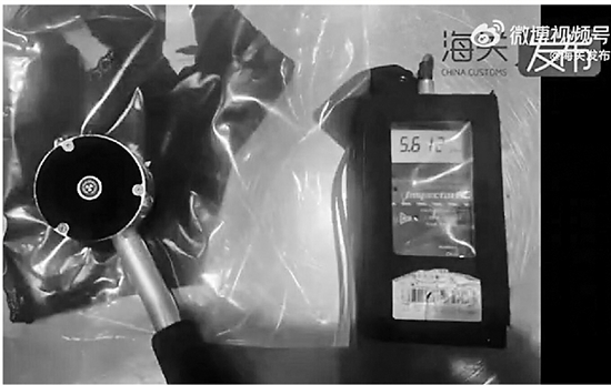 近日,大连周水子机场海关在执行进境航班监管任务时,一名旅客通过海关固定式核辐射监测门引发报警。海关关员立即开展相关排查,确定报警源头。经复查,该旅客携带的一件用于贴身穿着的“保健内衣”核辐射超标,辐射剂量达到5.612μSv/h,超现场本底值56倍。核素分析结果显示,该“保健内衣”含放射性核素镅-241,长时间、近距离接触可对人体造成一定损害。